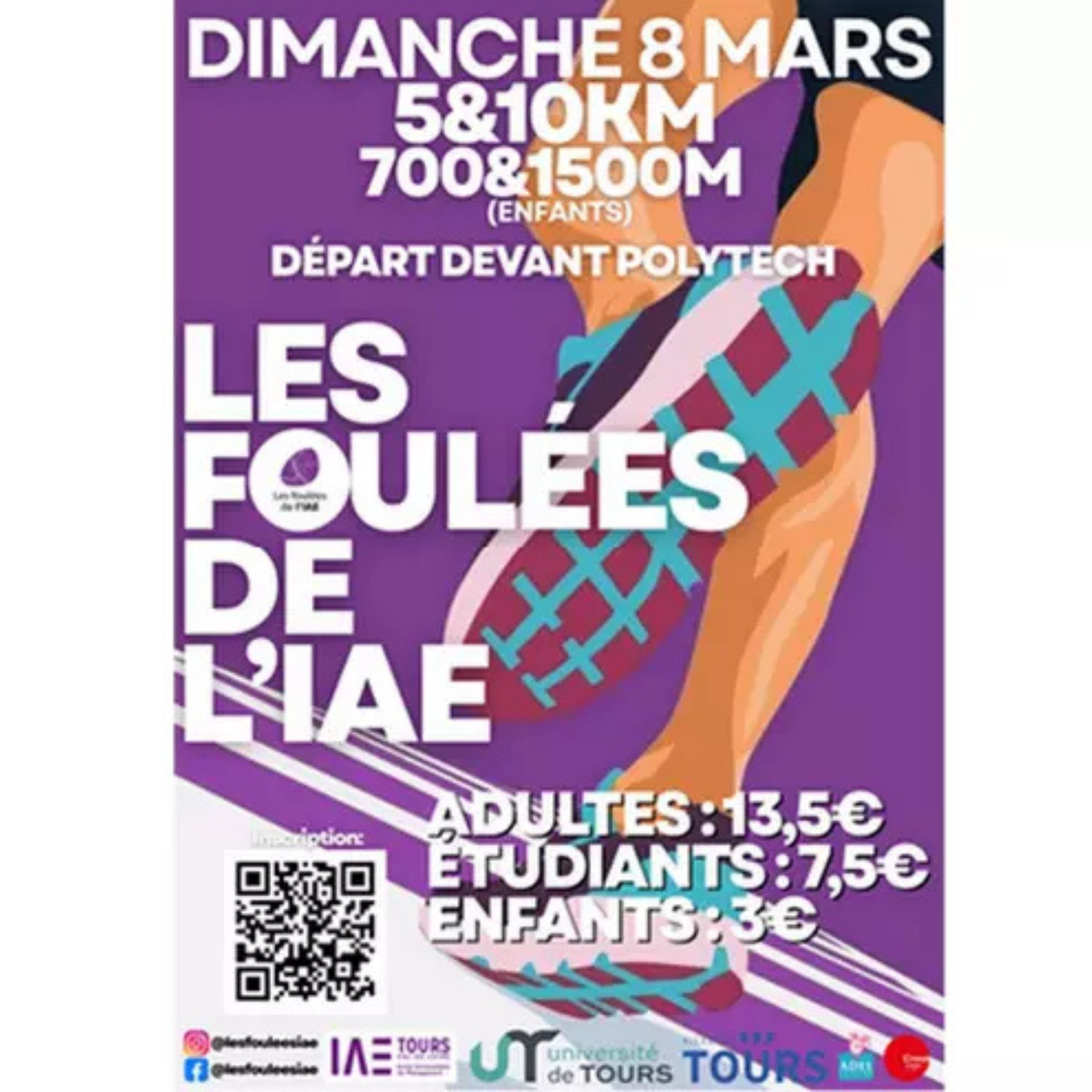 L’IAE de Tours vous donne rendez-vous pour la 29ème édition des Foulées de l’IAE ! Que vous soyez runner confirmé ou coureur du dimanche, rejoignez-nous pour une matinée sportive et conviviale.